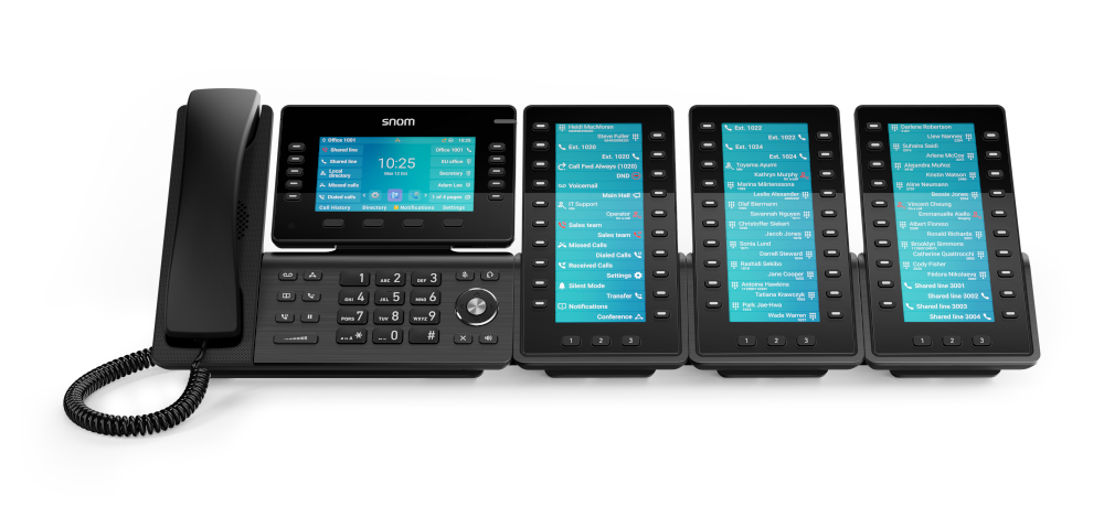 さらに、より広範な管理が必要な場合は、Snom D8Cを最大3台まで直列接続可能。USB接続によるプラグアンドプレイで簡単に拡張できます。