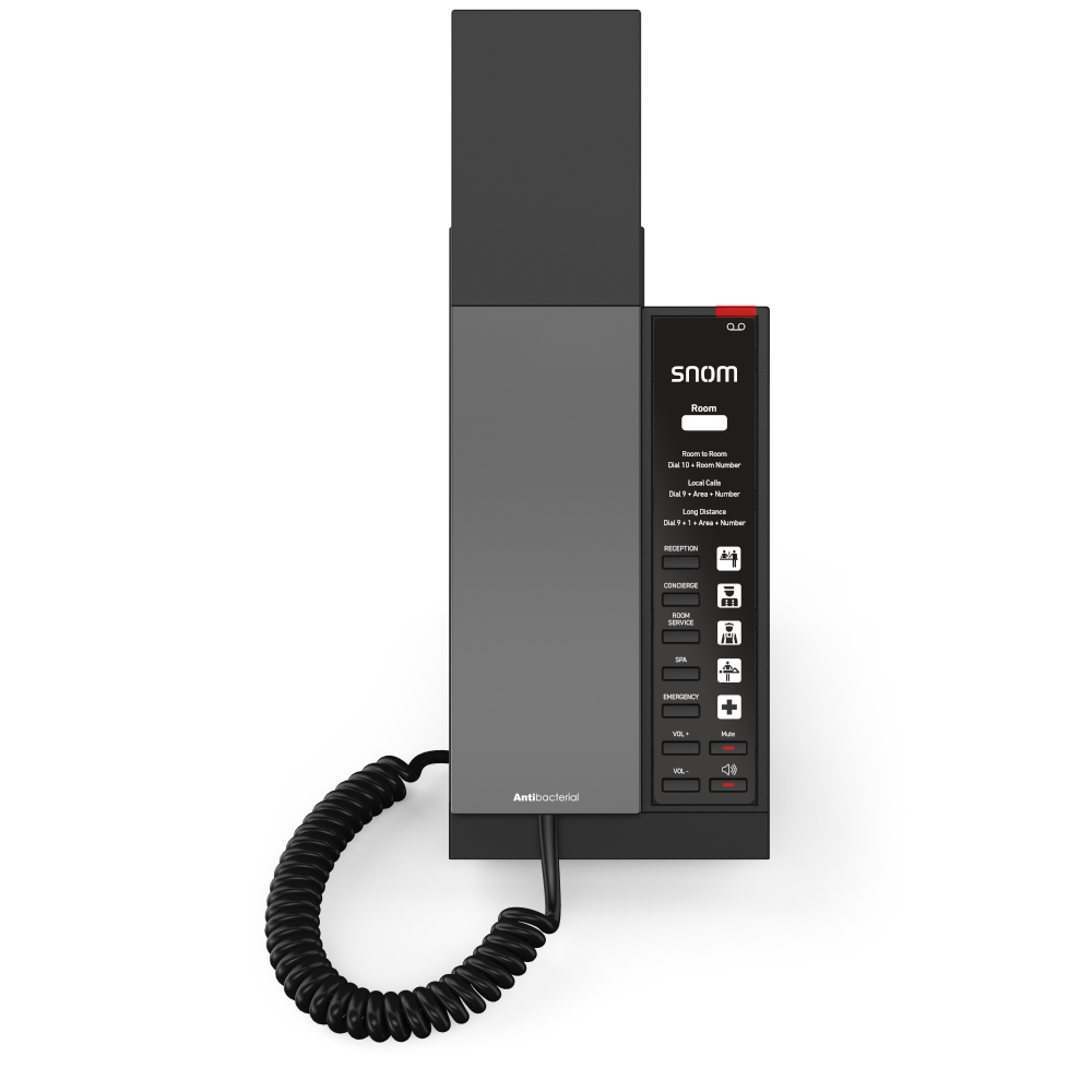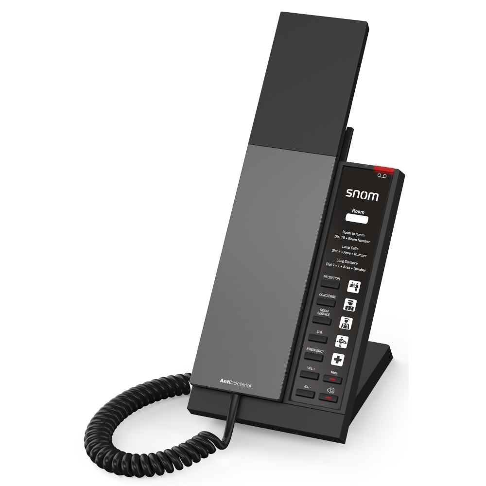 The Snom HD340A combines elegant, slim design with all essential hotel functions. With two clearly structured key rows, it enables intuitive operation – perfect for guests who want quick access to important services. Speed dial keys for key functions such as mute, volume control and hands-free are easy to recognise.